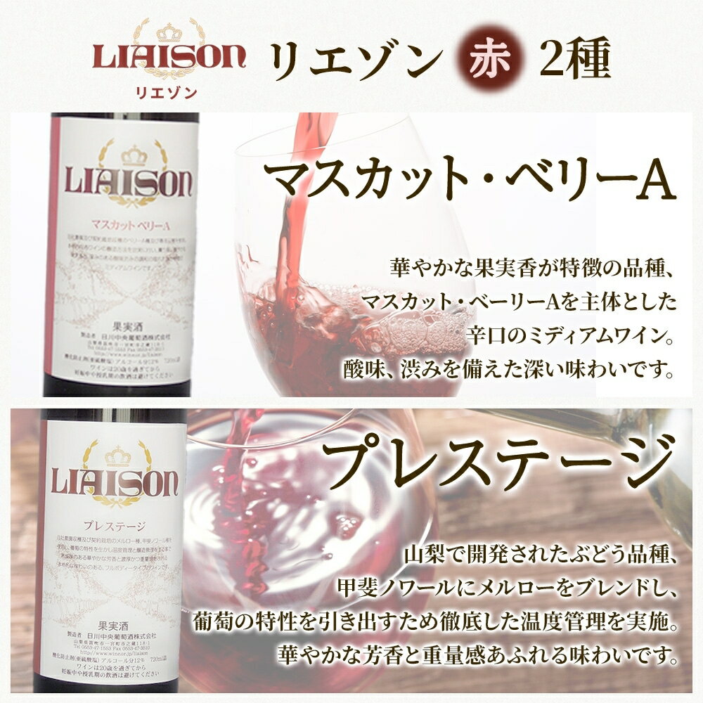 - 【ふるさと納税】赤ワイン 3種 6本 720ml セット ベーリーA プレステージ Liaison NOVICE リエゾン ノヴィス フルボトル ワイン お酒 飲み比べ 山梨 日川中央葡萄酒 送料無料 山梨県 笛吹市 177-7-36