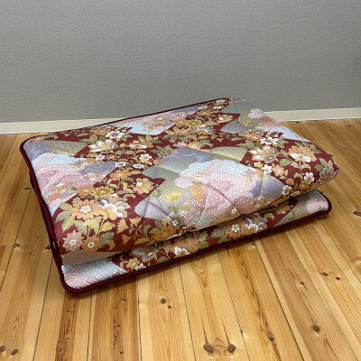- 【ふるさと納税】日本製固綿入りボリューム敷布団(シングル/和花柄エンジ)【1707155】
