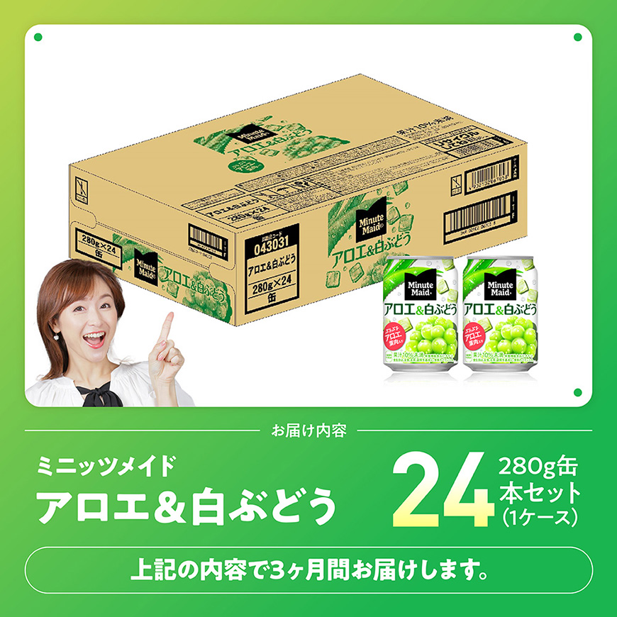 - 【3ヶ月定期便】コカ・コーラ ミニッツメイド「アロエ&白ぶどう」280g缶 24本 飲料 [C11131t3]