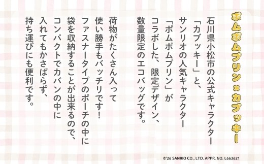 【小松市限定デザイン】カブッキー × ポムポムプリン 小松市オリジナルエコバッグ サンリオ キャラクター | 石川県 小松市