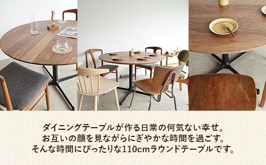 直径110cmウォールナット無垢ラウンドテーブル 脚カラーシルバー【木製 テーブル ダイニングテーブル ウォールナット 円形 4~5人用 一本脚 無垢材 温かみ 国産 シンプル おしゃれ 受注生産 家具 インテリア 島根県 安来市】【420-AW-05-2】