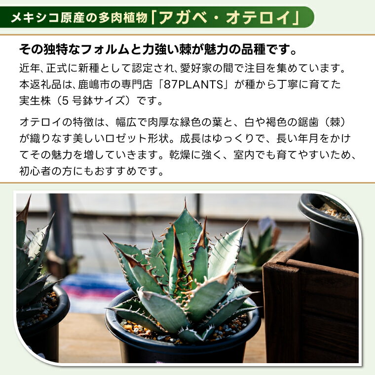 【ふるさと納税】鹿嶋市産 実生アガベ・オテロイ(5号鉢サイズ)【アガベ オテロイ 多肉植物 鉢 茨城県 鹿嶋市】(KCP-11)
