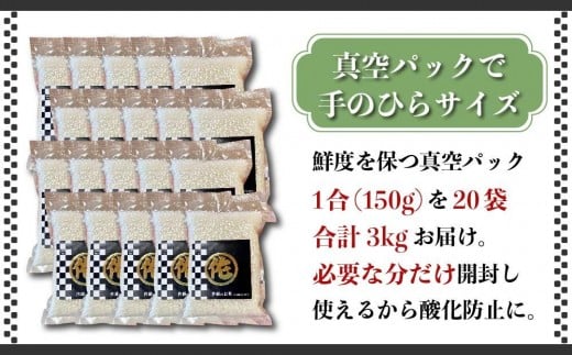 <令和7年産>キャンプ飯 無洗米 真空パック 1合×20袋 (3kg) 【無洗米 精米 ご飯 ごはん 米 お米 元気つくし ブランド 真空パック パック 保存 小分け 備蓄米 便利 キャンプ BBQ バーベキュー 非常用 筑前町産 旬 おにぎり お弁当 食品 筑前町ふるさと納税 ふるさと納税 筑前町 福岡県 送料無料 AB016】