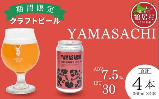 クラフトビール Brasserie Knot 期間限定 YAMASACHI 4本セット 飲み比べ 地ビール ビール お酒 地域限定 芳醇 ギフト 家飲み 宅飲み ペールエール ベルジャン お中元 お歳暮 缶 缶ビール フルーティー ホップ 爽快感 華やか ブルワリー ブラッスリー・ノット 詰め合わせ 晩酌 Beer 醸造所 プレゼント 360ml ふるさと納税 限定 北海道