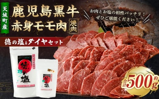 - 鹿児島 黒牛 赤身 モモ肉 焼肉用 500g 徳の塩・ダイヤ セット 計約230g 総計約730g 【セット】 天城町産 鹿児島育ち 黒毛和牛 赤身モモ肉 国産 鹿児島県 天城町