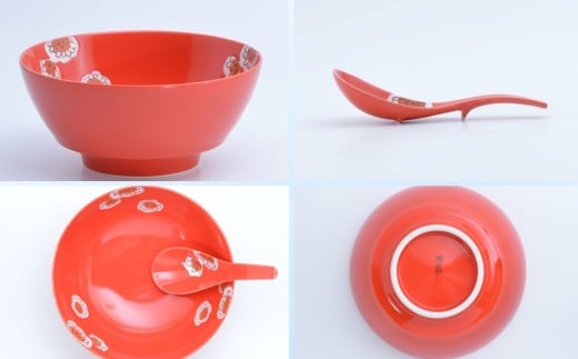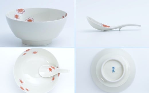 - 【有田焼】究極のラーメン鉢 レンゲ付ペアセット(赤釉菊・灰釉菊)[A0033-0021]