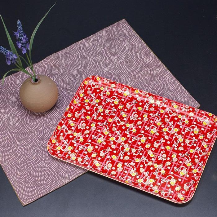 タツクラフト 友禅和紙トレー L 39cm 2枚セット 小花 舞うさぎ 【Tk322】 303446_DA90134VC06