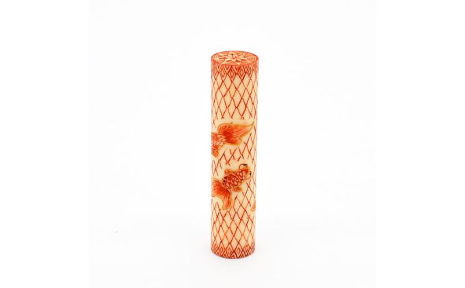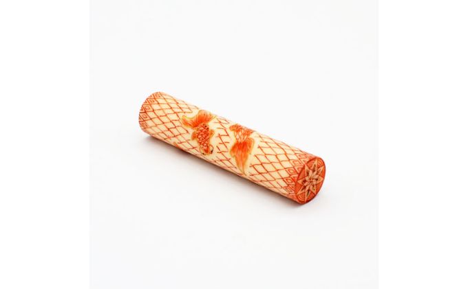 - 九谷彩印 「赤絵細描網文」福島礼子 雑貨 日用品 民芸品 工芸品 伝統技術 判子