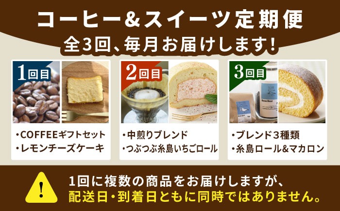 - 【全3回定期便】糸島 コーヒー&スイーツ定期便 (コーヒー 豆 / チーズケーキ / ロールケーキ / マカロン ) 糸島市 [AAH008]