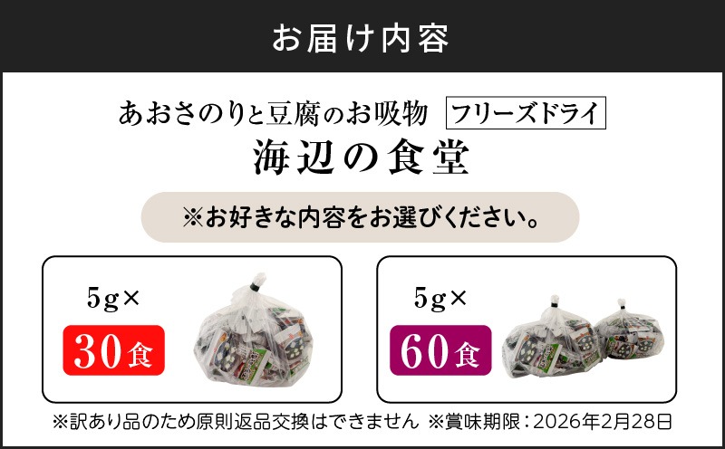 <選べる>【5営業日以内に発送】【訳アリ】あおさのりと豆腐のお吸物(フリーズドライ)30食 or 60食 K058-025_SKU