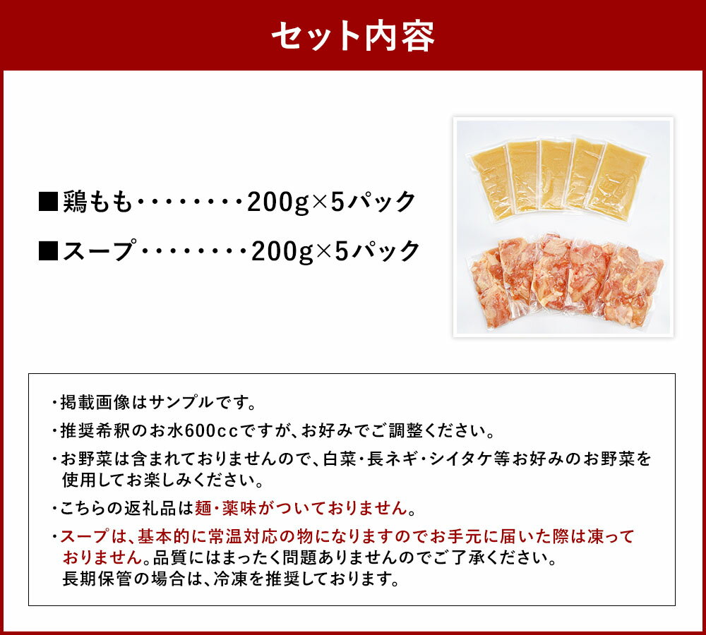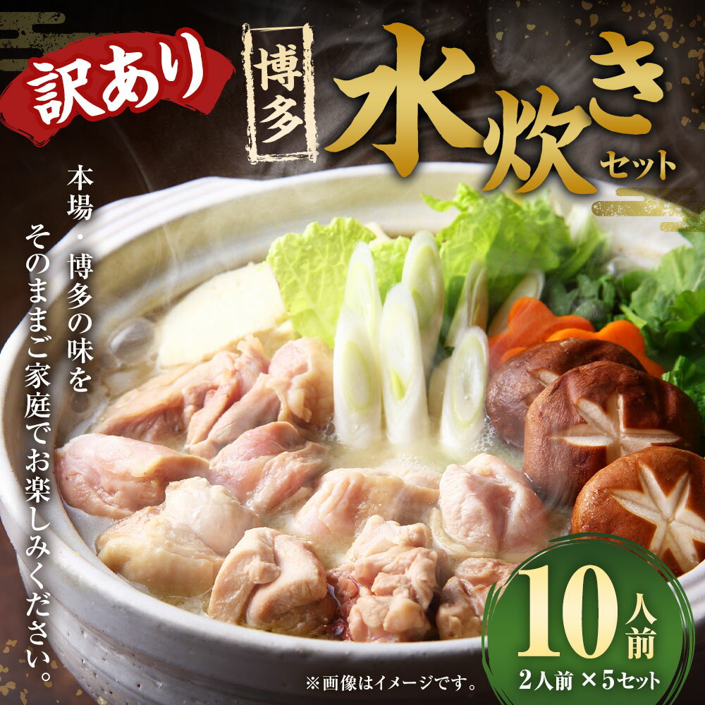 【ふるさと納税】訳あり!博多水炊きセット 10人前(2人前×5セット) 鶏もも・スープ 計2kg(200g×10パック(各5パック)) 鶏肉 鳥モモ肉 もも肉 お肉 鶏白湯スープ 小分け包装 鍋料理 惣菜 冷凍 福岡県 直方市 送料無料