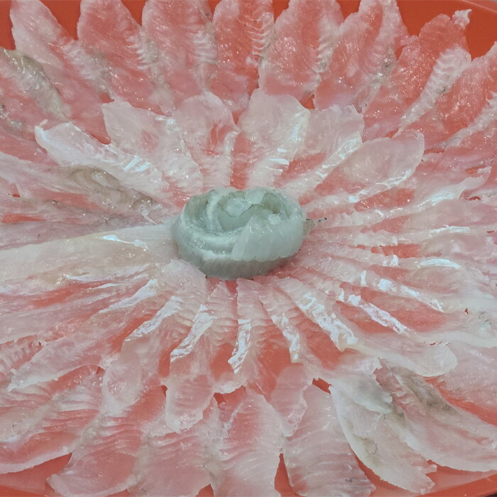 - 【ふるさと納税】 笠戸ひらめお刺身(薄造り、朱皿プラスチック)約4~5人前【引換券】 / 鮃 ヒラメ お造り 送料無料 山口県 No.184