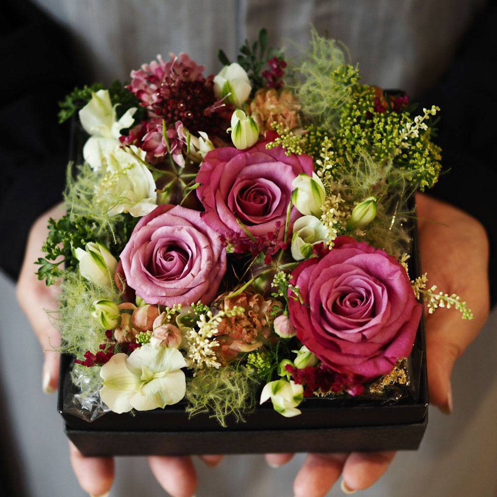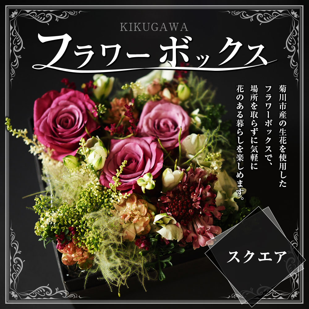 - 【ふるさと納税】【生花】【フラワーボックス】KIKUGAWA FlowerBox (square) 1箱 フラワーギフト 季節の花 誕生日 お祝い 記念日 結婚祝い インテリア グリーン ハーブ 冷蔵 静岡県 菊川市 送料無料