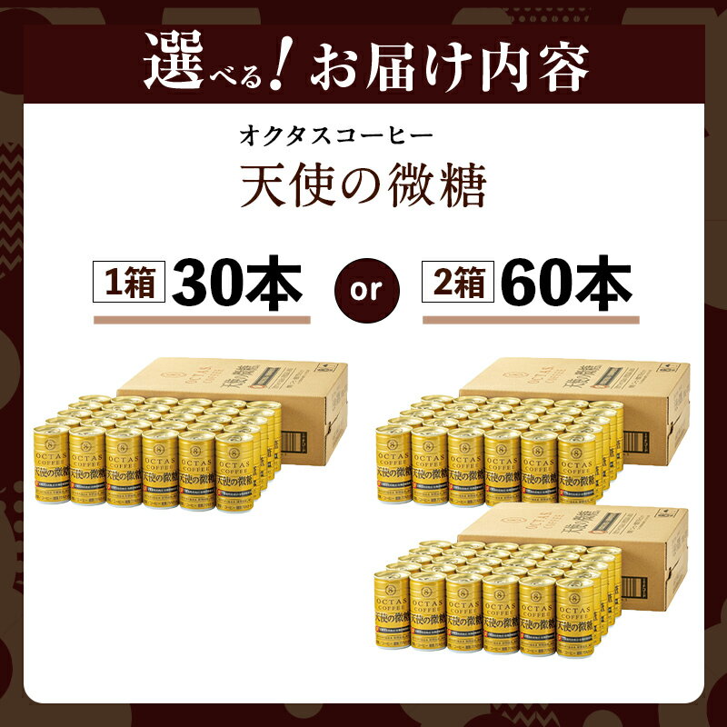 - 【ふるさと納税】【容量が選べる!】 <すぐ届く!>コーヒー 微糖 缶 オクタスコーヒー 天使の微糖 185g/本(30本or60本) 温泉水 で抽出 有機砂糖 有機豆使用 有機栽培炭焼珈琲豆使用 珈琲 coffee ソフトドリンク 財寶 すぐ届く【財宝】