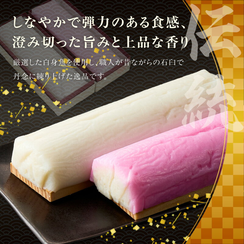 - 【ふるさと納税】【先行予約】【2026年12月お届け】超特選 蒲鉾 紅白 各 1本 岸上蒲鉾 練り物 石臼 職人 練り上げ 伝統の技 手作り しなやかな弾力 上品な香り 特別出荷 職人の味 冷蔵 お正月 お祝いの席 おせち おつまみ お土産 贈答用 お取り寄せ 宮崎県 延岡市 送料無料