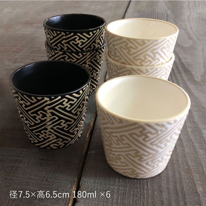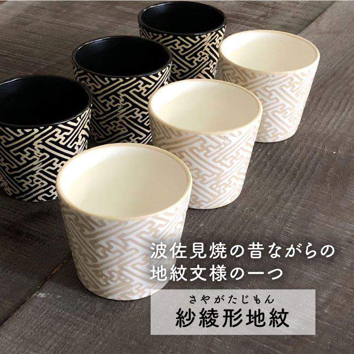 - 【ふるさと納税】【感謝祭対象】【波佐見焼】粉引き・黒マット紗綾形地紋カップ セット そばちょこ 湯呑み 小鉢 スープカップ 食器 皿 【馬徳陶苑】 [YD04]