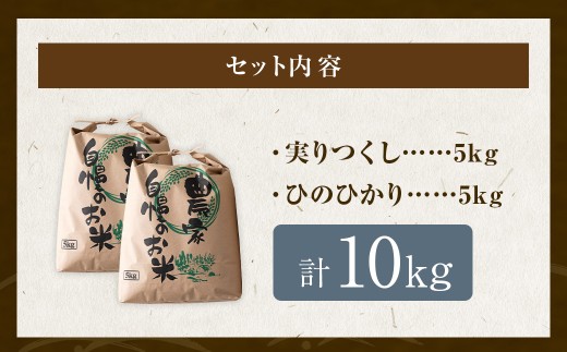 五庄屋の地で作った お米 玄米 食べ比べセット( 実りつくし ・ ひのひかり )各5kg 計約10kg 米 ご飯 国産 九州産 福岡県 うきは市 【2026年1月下旬発送開始】