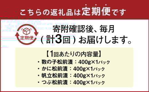 【3回定期便】海鮮 4種の松前漬セット 約1.6kg (合計約4.8kg) (数の子 ・ かに ・ 帆立 ・ つぶ) 3回 4種類 松前漬け 松前漬 魚卵 カニ 蟹 ほたて ホタテ つぶ貝 貝 海の幸 小分け セット 定期便 北海道 小樽市 冷凍 送料無料