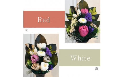 [赤]仏花プリザ+花器セット(Mサイズ)【2403G03812_02】