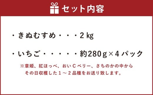 - 【令和7年産】新米・精米 きぬむすめ2㎏&いちご詰合せ(約280g×4パック) 【2026年1月上旬から5月上旬頃発送予定】 いちご お米 白米 セット 冷蔵 岡山県 美咲町
