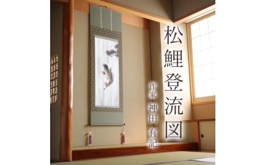- 掛け軸「松鯉登流図」 神田有記 尺五立 サイズ:54.5×190cm 桐箱付 掛け軸 和室 おしゃれ 日本画 表装 床の間