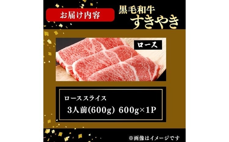 鹿児島県産黒毛和牛すき焼き肉ローススライス(3人前600g/600g×1P) e8-002