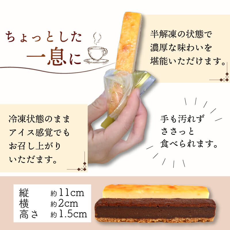 - 【ふるさと納税】 スティックケーキ15本( ベイクドチーズ・レアチョコ ) ケーキ 菓子 洋菓子 スイーツ チョコ チーズ おやつ おかし 冷凍 贈答 のし プレゼント ギフト バレンタイン 母の日 和菓子 和菓子屋 壷屋田耕 三陸 岩手県 大船渡市 送料無料