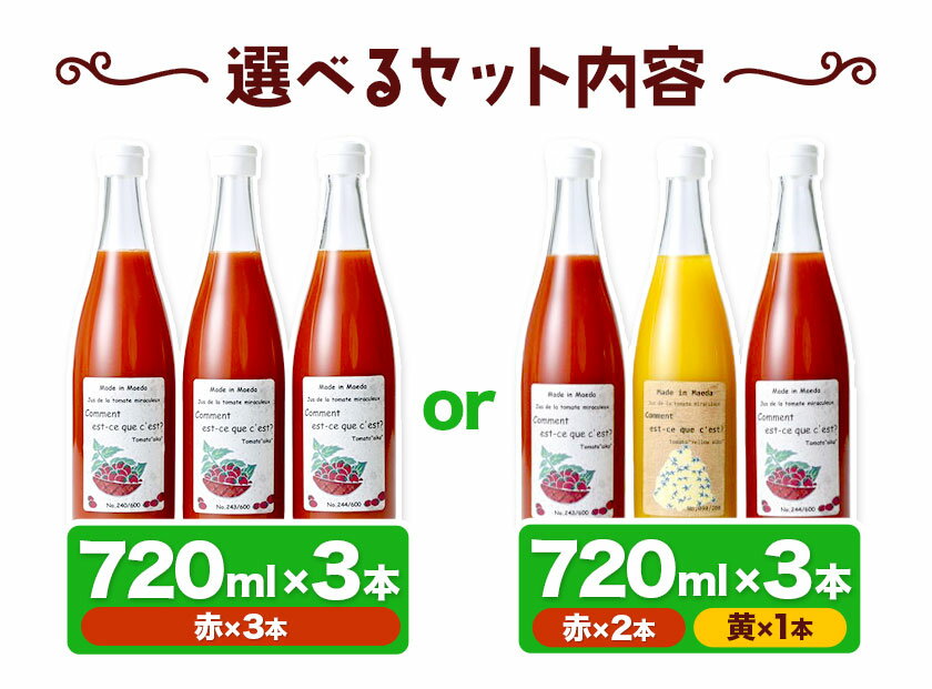 【ふるさと納税】前田農園 トマト ジュース「アイコ」3本 セット 選べる 赤3本 赤2本黄1本 NPO法人なよろ観光まちづくり協会《30日以内に出荷予定(土日祝除く)》北海道 名寄市 飲料 飲み物 野菜ジュース 野菜 トマトジュース 【配送不可地域あり】