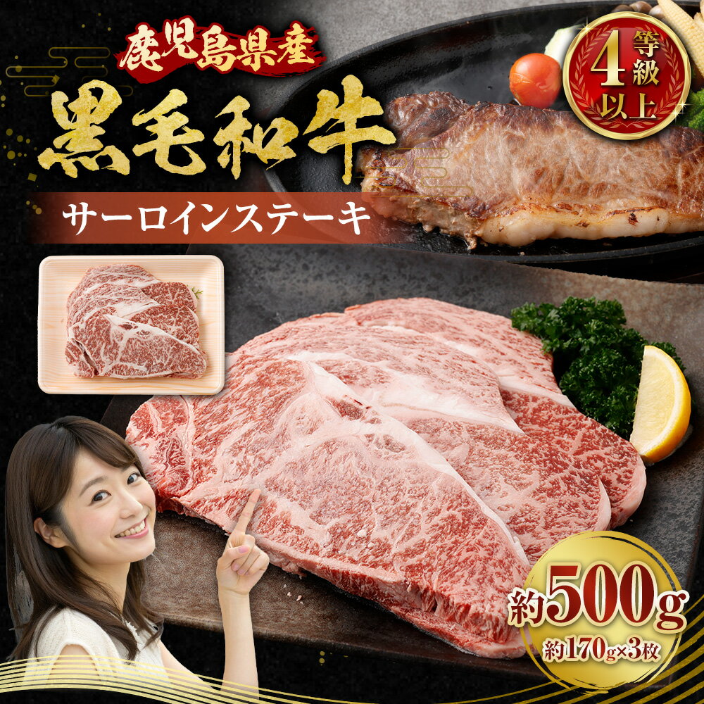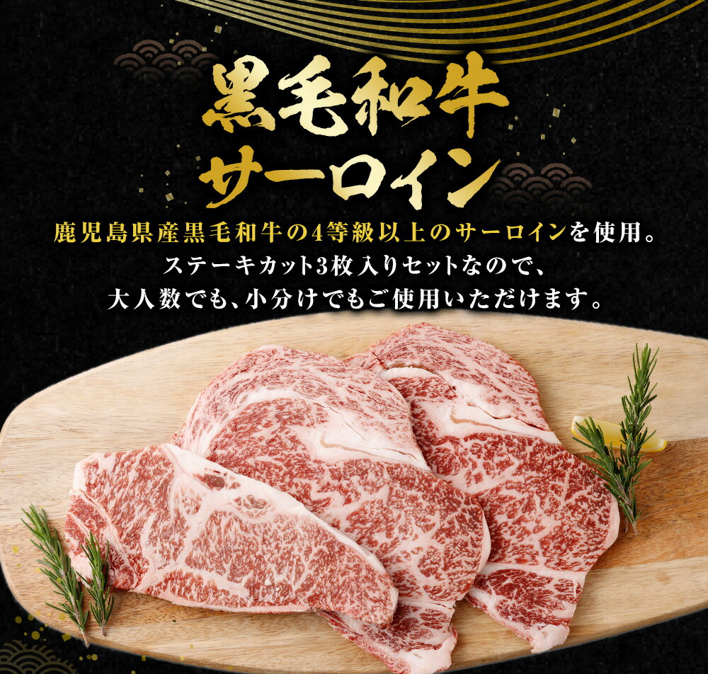 - 【ふるさと納税】【鹿児島県産】 黒毛和牛 サーロインステーキ 約500g (約170g×3枚) 牛肉 サーロイン ステーキ 国産 国産牛 ステーキ肉 肉 にく お肉 和牛 冷凍 鹿児島県 薩摩川内市 送料無料 BS-3122