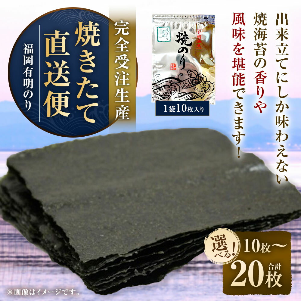 - 【ふるさと納税】焼きたて直送便 福岡有明のり 全形 10枚入 〈選べる内容量〉1袋 (計10枚) / 2袋 (計20枚) 【完全受注生産】 海苔 ごはんのお供 おにぎり おやつ おつまみ 手巻き寿司 朝ごはん 有明海産 福岡県 大任町 送料無料料