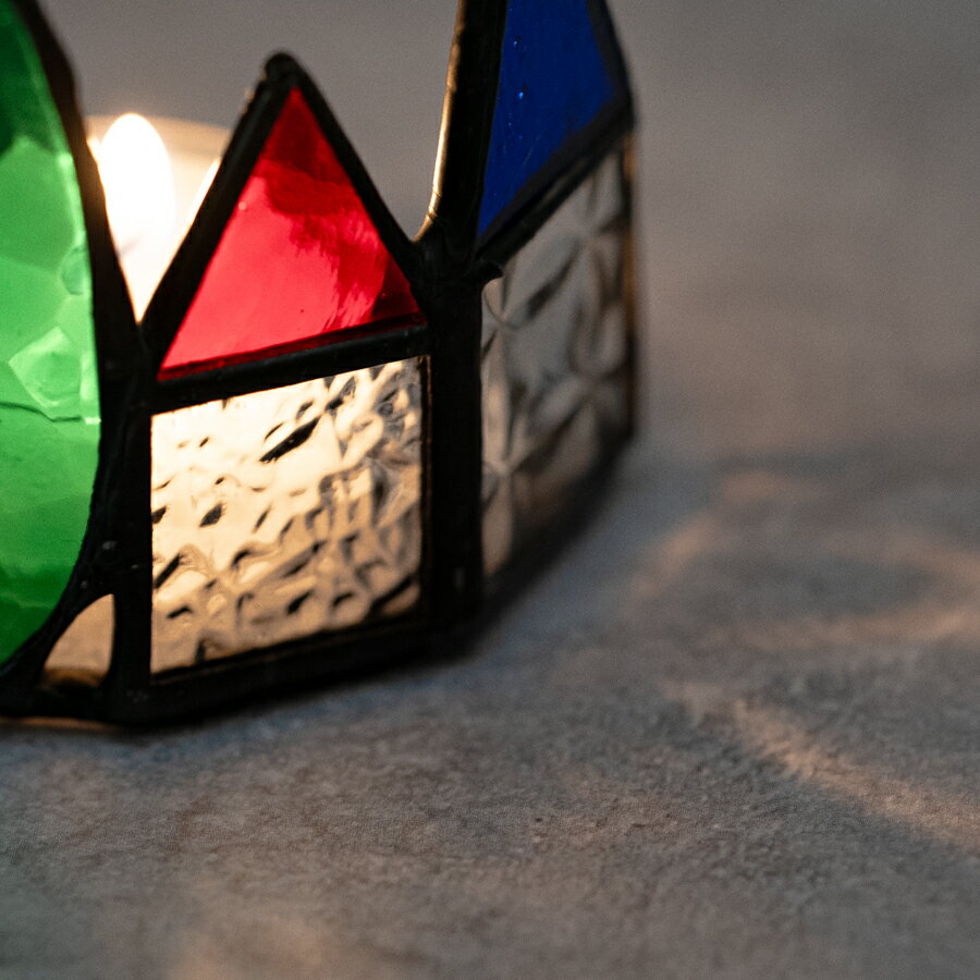 - 【ふるさと納税】ステンドグラス キャンドルホルダー 三角屋根の街並み 手作り インテリア雑貨 ハンドメイド 雑貨 癒し グッズ 室内飾り リラックス ギフト プレゼント 新生活 贈り物 お祝い 室内装飾 オフィス飾り おしゃれ インテリア小物 小物置き