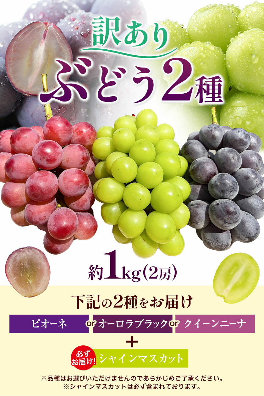 【ふるさと納税】訳あり ぶどう 2種 セット 約1kg ( 2房 ) シャインマスカット + ピオーネ or クイーンニーナ or オーロラブラック 株式会社日本植生グループ本社 NISSHOKU FARM《9月下旬-12月末頃出荷》ブドウ 浅口市 【配送不可地域あり】 (離島)