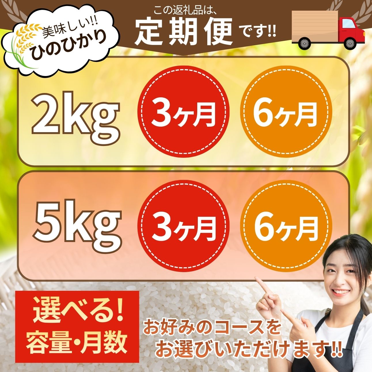 - 【ふるさと納税】お米 ひのひかり ヒノヒカリ 令和7年産 米 定期便 2kg 5kg 選べる 容量 月数 お届け回数 3ヶ月 6か月 半年 ブランド米 お弁当 おにぎり ご飯 山梨県 中央市 市川三郷町【中央市共通返礼品】株式会社 アドヴォネクスト たとみ農園 [5839-2318]