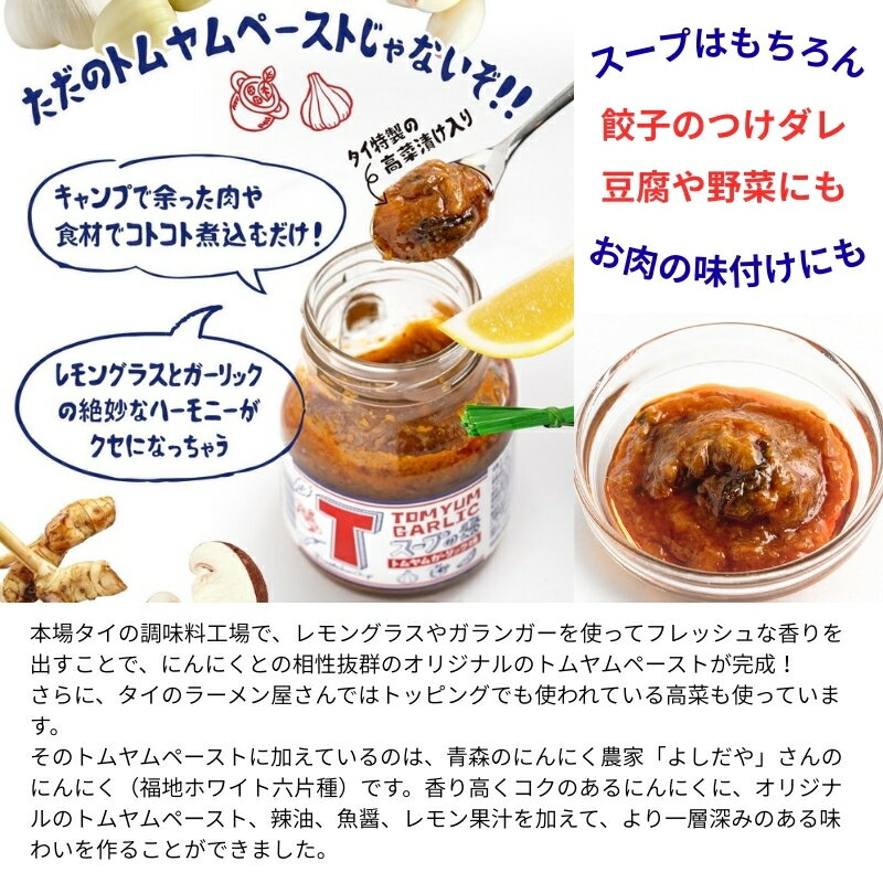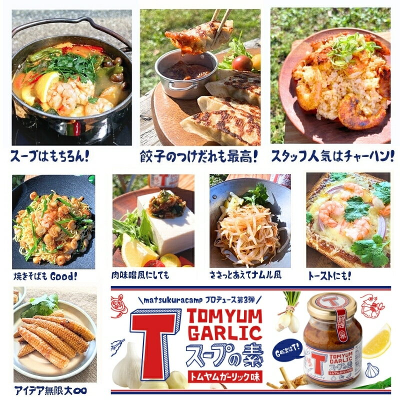 - 【ふるさと納税】 Tスープの素 計380g(190g×2本) トムヤムクン ガーリック スープ スープの素 調味料 にんにく アレンジ 簡単 餃子のたれ つけだれ 焼き飯 キャンプ バーベキュー BBQ 万能調味料 料理 調理 夕食 送料無料 ふるさと納税 千葉県 銚子市 アウトドアオペラ