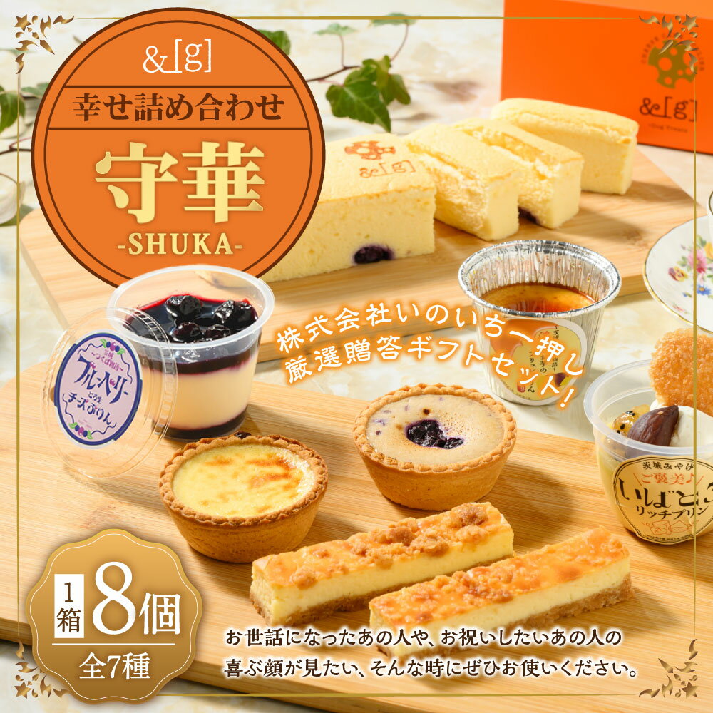 【ふるさと納税】[&g]幸せ詰め合わせ守華-SHUKA-(ふわシュワ cheese cake×1、いばとろリッチプリン×1、濃厚お芋のブリュレプリン×1、とろ生チーズプリンかける1、チーズケーキバー×2、プチリッチエッグタルト[カスタード×1&ブルーベリー×1]) | スイーツ 送料無料