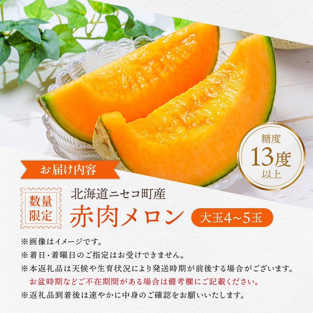 - 【ふるさと納税】【北海道ニセコ町産】赤肉メロン4~5玉 <数量限定・2026年早期予約・7月下旬より出荷予定>【02038】