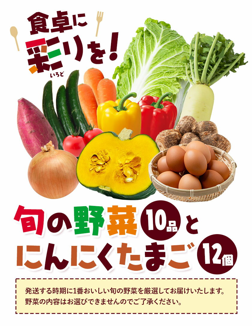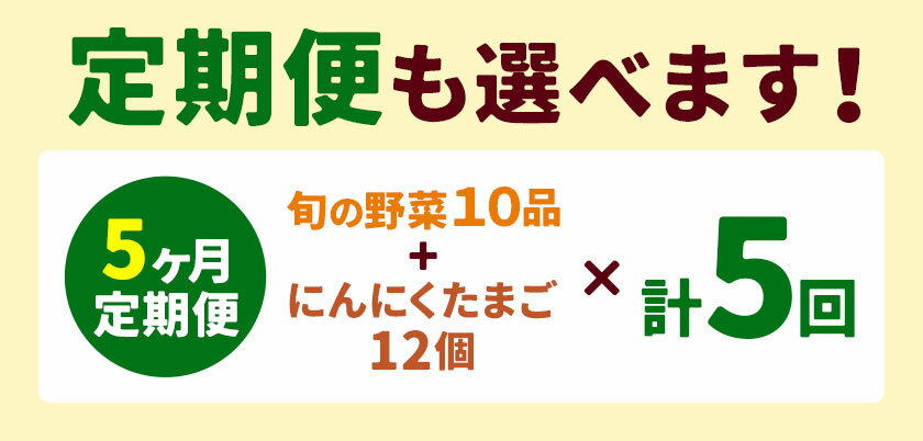 - 【ふるさと納税】旬の野菜とたまごのセットメロンドーム 野菜 卵 にんにくたまご 卵 詰め合わせ 5ヶ月 定期便 有限会社七城町特産品センター《選べる出荷時期》熊本県 菊池市 セット 新鮮 国産 九州産 熊本県 菊池市 道の駅 旬