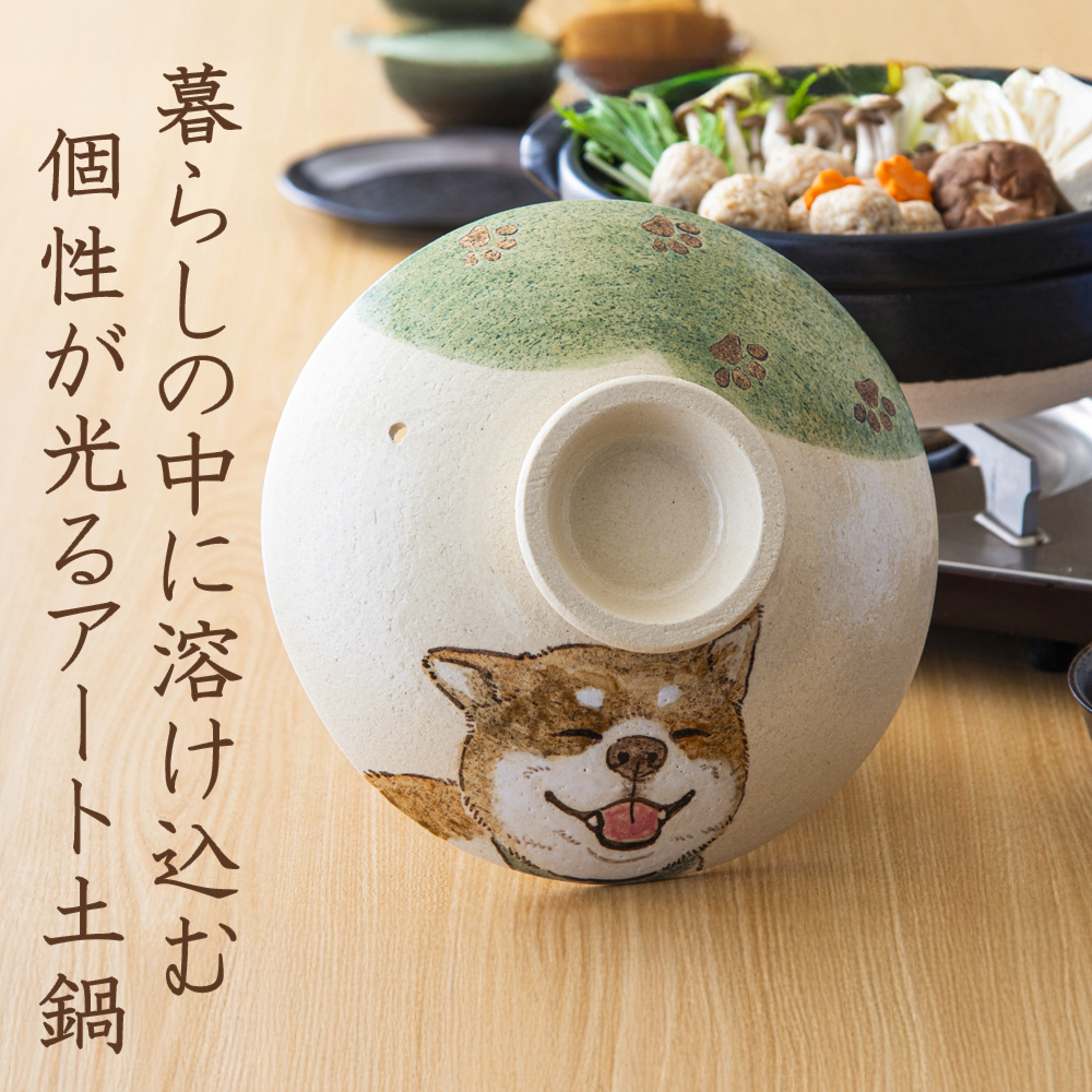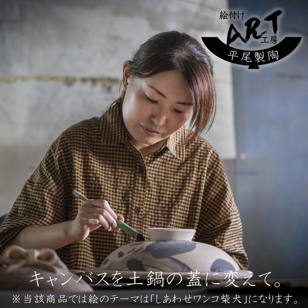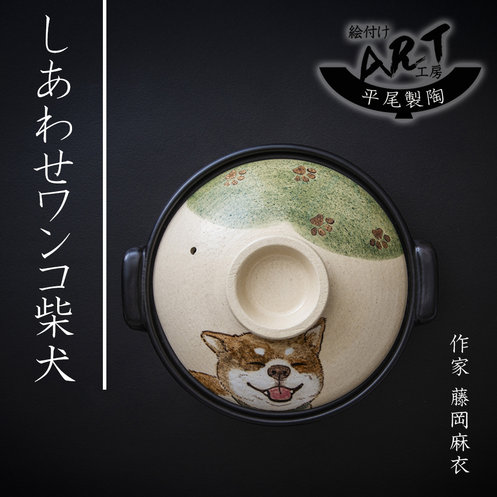 - 【萬古焼(ばんこやき)】暮らしの美術品 絵付けアーティストの個性が光るHandmade土鍋。絵付けART工房・平尾製陶 土鍋9号「しあわせワンコ柴犬」【手描き 土鍋 ハンドメイド アート デザイン 鍋 家庭用 4人用 4人前 5人用 5人前 家族 冬 煮込み 手芸 工芸 三重県 四日市市 ふるさと納税】