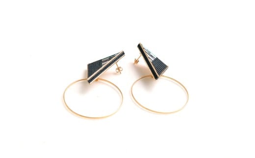 水引 イヤリング Triangle Hoop【ブラック】| 水引 伝統 受注生産 ピアス イヤリング ギフト 贈り物 長野県 飯田市