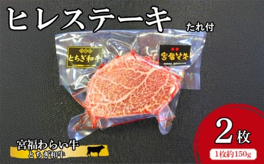 宮福わらい牛(とちぎ和牛) ヒレステーキ 約150gx2枚 たれ付 ※離島への配送不可