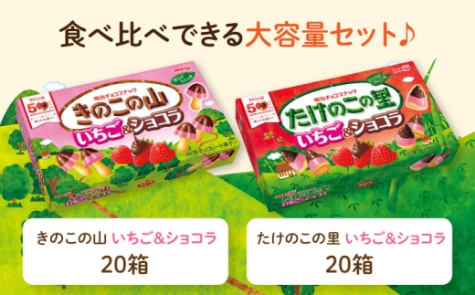 チョコレート 明治 きのこの山 たけのこの里 いちご&ショコラ 各20箱(計40箱) チョコレート きのこの山 たけのこの里 食べくらべ お菓子 おやつ チョコ クッキー イチゴチョコ スイーツ アソート 大容量 ストック 人気 おすすめ 大阪府高槻市/株式会社 丸正高木商店 [AOAA068]