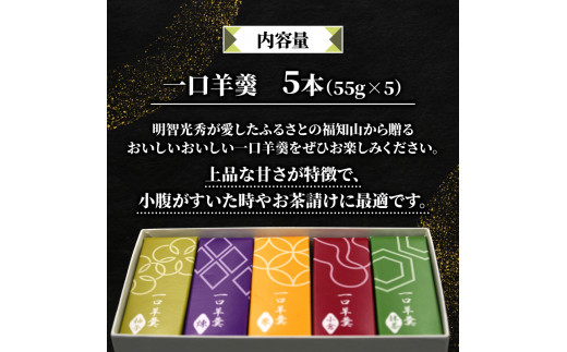 明智の郷のおいしいおいしい一口羊羹 5本(55g×5)栗羊羹 抹茶羊羹 小倉羊羹 柚子羊羹 練羊羹 和菓子 ようかん 羊かん 一口サイズ 栗 小倉 練 抹茶 柚子 あずき 小豆 くり まっ茶 ゆず お菓子 おやつ お茶菓子 抹茶スイーツ スイーツ 詰め合わせ 手土産 贈り物 贈答 贈答用 ギフト プレゼント 京都 京都府 福知山市 ふるさと納税 お取り寄せ 人気 ご褒美 5000円 5000
