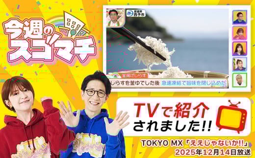- TVで紹介!<釜揚げしらす 合計560g(70g×8袋)> テレビ TV シラス ちりめんじゃこ 海鮮 魚介類 海産物 おにぎり 具材 おつまみ 箱 パック 乾物 乾燥 しらす干し 天日干し セット 熨斗 のし ギフト 贈答 網元・祇園丸 愛媛県 西予市 【冷凍】『1か月以内に順次出荷予定』