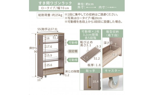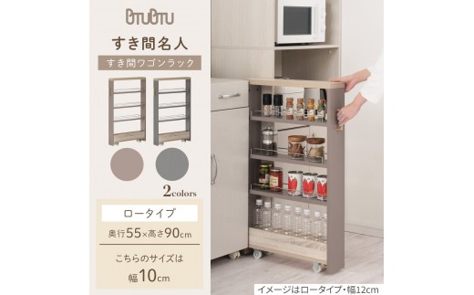 - 【完成品+設置付き】すき間 ワゴンラック ロータイプ 幅10cm (グレー)キッチン 隙間収納 キャスター付き キッチンワゴン スリム 収納 キッチン隙間ワゴン キッチン隙間家具 ラック キッチン収納 KKONRA945068-10-GY