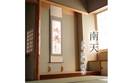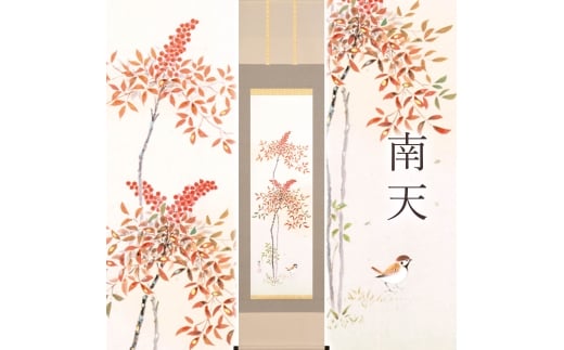 - 掛け軸「南天」 佐藤純吉 半切立 サイズ:47×190cm 桐箱付 掛け軸 和室 おしゃれ 日本画 表装 床の間