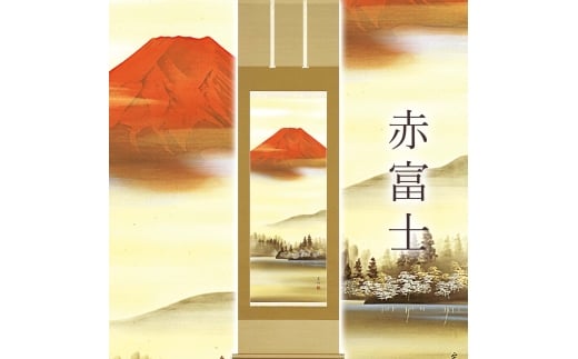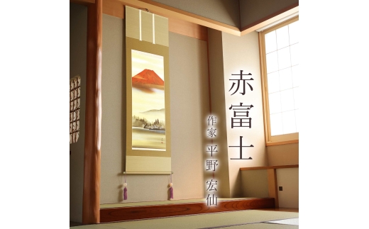 掛け軸「赤富士」 平野宏仙 尺五立 サイズ:54.5×190cm 桐箱付 掛け軸 和室 おしゃれ 日本画 表装 床の間