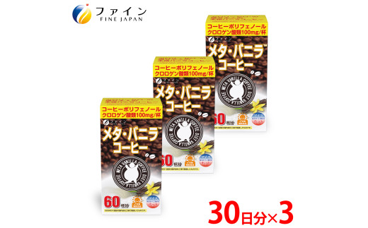 【ファイン】メタ・バニラコーヒー×3個セット(180杯分)| コーヒー バニラ ダイエット 健康 クロロゲン酸 ポリフェノール オリゴ糖 カテキン 燃焼系素材 顆粒 分包 インスタント 持ち運び 便利 生活習慣 在宅ワーク 職場 ブラックコーヒー バニラフレーバー 甘い香り セット 詰め合わせ プレゼント ギフト チャリティ 社会貢献 兵庫県 上郡町