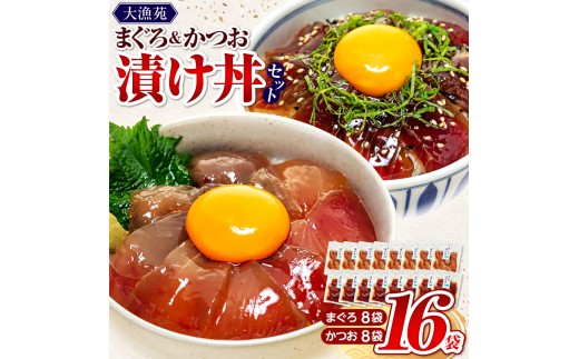 - 【流水解凍 で簡単に絶品漬け丼!】大漁苑 の まぐろ かつお 漬け 16袋 セット 鰹 鮪 かつお まぐろ カツオ マグロ 漬丼 漬け丼 づけ丼 漬け 刺し身 お刺身 海鮮 海鮮丼 海の幸 お茶漬け 出汁茶漬け 惣菜 時短 魚 さかな 魚介 おかず 冷凍 冷凍食品 数量限定 産地直送 加工品 個包装 小分け 贈り物 ギフト 贈答用 国産 安心 美味しい 新鮮 水産品 牧之原市 静岡県 大漁苑