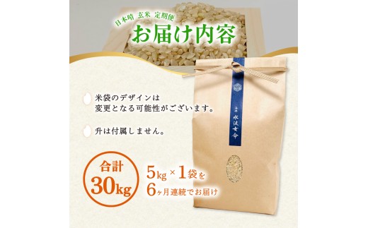 - 先行予約【定期便】日本晴 玄米 5kg×6回 6ヶ月連続 令和8年産 天然にがり栽培 にっぽんばれ 希少 品種 お寿司 ピラフ チャーハン【2026年10月より順次発送】