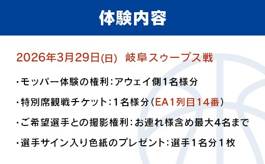 - C8-06A【3月29日岐阜スゥープス戦アウェイ席】新潟アルビレックスBB HG公式戦モッパー体験+特別席観覧チケット